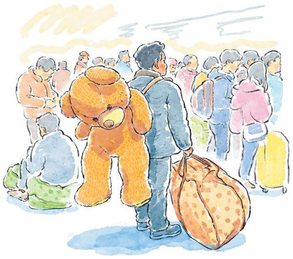 返乡路上,有人背着大大的玩偶,只为给孩子一个惊喜。