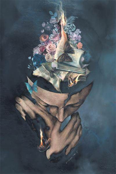 这时,阿尔吉侬在愤怒和消沉中死去了,查理把它埋在后花园里,开始了孤单而艰难的自我发现之旅。他原谅了原生家庭对自己的伤害,与纪安尼小姐享受了短暂而珍贵的时光。但同时,他也逐渐忘记如何弹奏钢琴,忘记学过的外语,忘记自己是如何从弥尔顿的《失乐园》中获得快乐的。如果说之前从蒙昧走向光明的旅途坎坷而令人振奋,那么这一段从光明再度回到黑暗中的描写只能用“令人心碎”来形容。智慧就像手中的流沙一样无情逝去,他的智力终于退回到最初水平,他忘记了发生在自己身上的所有奇迹。