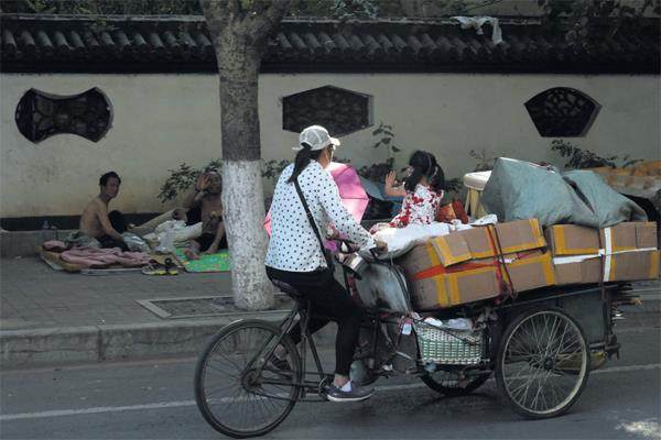 每当三轮车经过两个流浪者的露宿地时,流浪者都会高兴地挥手和女孩打招呼。女孩也会挥手回应他们。这种人与人之间的相遇和温暖互动,让王天抒动容。这两个流浪者,也是王天抒的朋友。与他印象中的流浪者落魄萎靡的形象不同,流浪者包先生的眼神里有一种超然、洒脱、可爱,还略带一丝狡黠。他和同伴的露宿地一度成为王天抒每天必去的打卡地。一天晚上,王天抒戴着口罩开车经过时递给他们一盒压缩饼干,盒子里还放了200元钱。之后,每次经过时,他都能看见那个盒子在他们最重要的位置摆放着,这让他感到很满足。