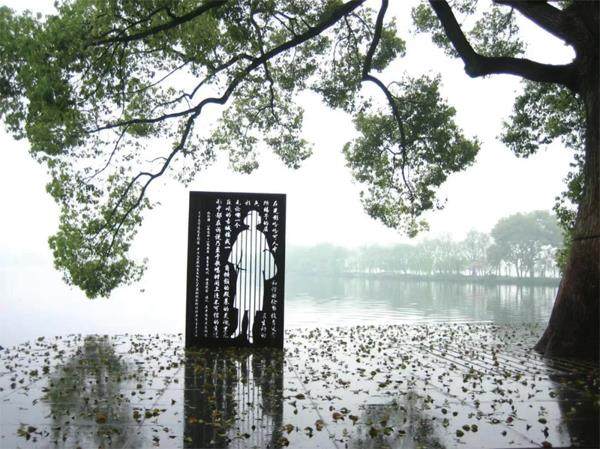 杭州西湖边,有一座林徽因纪念碑。不同于传统的人物纪念碑,这是一座镂空的林徽因的形象轮廓,衬着湖光山影,意境空灵而悠远,颇为动人。