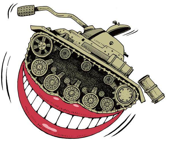 海明威有一篇短篇小说,名为《蝴蝶与坦克》,讲述战争时期一位欢乐的男子在酒馆中被射杀的故事。