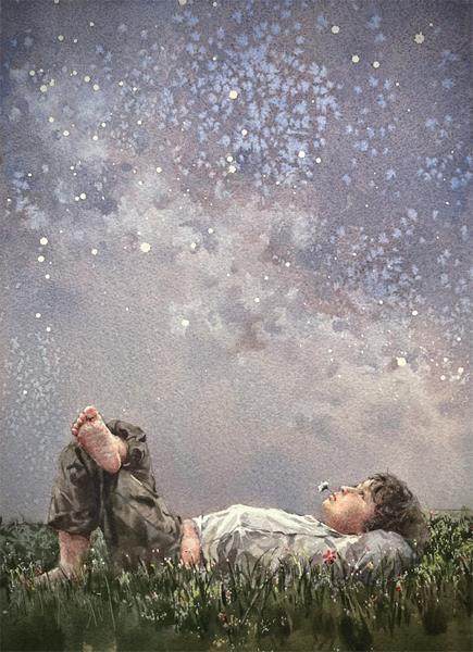 她说她喜欢仰望星空。她做过多年的文学梦,至今还未全然醒来,人虽在尘世烟火里劳碌,心却在璀璨星空里神游。她说几乎在每一个夜晚,她总要仰望一会儿星空,这是她必做的功课,不然就觉得心里不敞亮,神魂不自在。
