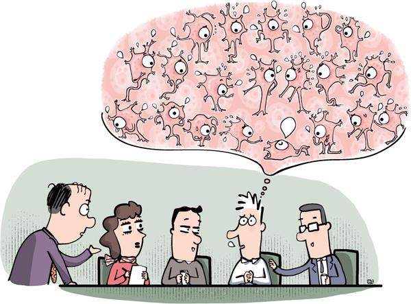 开会的时候,我们经常说“来一场头脑风暴吧”。“头脑风暴”是80多年前由美国人发明的,这个方法的提出基于一个前提:人们认为,产出好创意的主要障碍,是大家不好意思说出自己的想法。于是“头脑风暴”的发起者让参与者围在一起,随意将脑中和研讨主题有关的见解提出来,然后再将大家的见解重新分类整理。在整个过程中,无论发言者提出的意见多么可笑、荒谬,其他人都不得打断和批评,从而产生很多新观点和解决问题的方法。