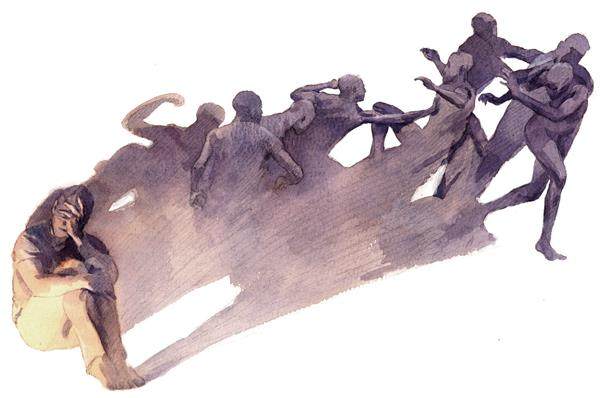 当时许多孩子围着他,嘲笑他,鄙视他,甚至对他吐口水。他稍稍垂着脑袋,脸上一副泰然自若的表情。我心里很不是滋味。他原本应该坐在教室里,和同龄人一样认真听讲,即便不认真听讲,至少他也是一名学生。现在,他不仅没有读书,反而被铐在电线杆上。这是不对的,但又能怎么办呢?我感到很无力。这些东西很沉重,压在心底让我快喘不过气来。我只想告诉别人,不吐不快。但是,又该告诉谁呢?而且说了又有什么用呢?我不知道。
