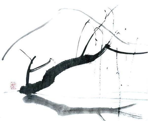 他也在吴冠中的另一幅画中感悟着自然那“似对称而又不对称”的美妙。