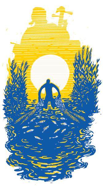 “我是喜欢和他去河边,我拉琴,他用网把浮上来的醉鱼捞上岸。他说买渔民的鱼也不假。”阿黄的声音有点伤感。