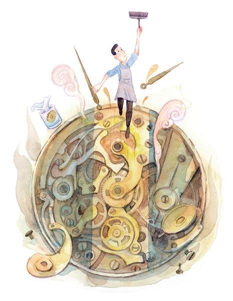 我在网上时常能看到一类视频,是关于物件翻新的。比如,一位工匠从垃圾堆里捡到一块旧表,表盘玻璃碎了,指针也不动了,金属接口的缝隙里还藏了好多黑泥。工匠就小心翼翼地把旧表拆开,将齿轮、发条和螺丝等部件依次摆好,然后用化学药剂和小刷子细细清洗;接下来是除锈、矫正、换件、上油等一系列工序;等最后把所有的零件重新拼装好,一块锃光瓦亮的表就修好了。这类视频在网上极受欢迎,播放量颇大,人类似乎在天性上就喜欢这种靠用心努力将不堪用的物件改造为珍品的过程,并从一点一滴的成就中得到巨大的幸福感。