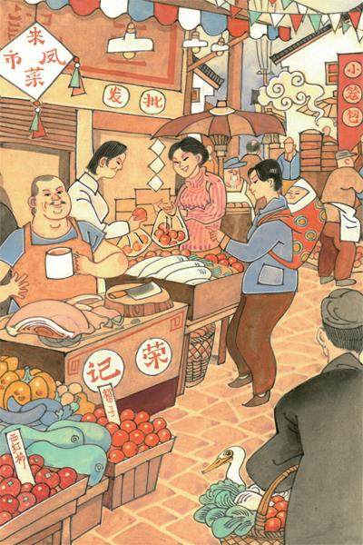试想,在一个平凡的周末早上,睡醒以后,溜达到附近的菜市,先拐进旁边的小铺买根油条,一边吃,一边掀开万年不换的塑料门帘——西头卖豆腐、榨菜、炸丸子等副食品的摊位已经开张,穿过狭长的杀鱼卖肉的走廊,就是一片蔬菜瓜豆的天地。直奔常光顾的老菜农的摊位,拿点儿新摘的辣椒、茄子,再去选几根晚上吃的玉米。红富士苹果、雪花梨、玫瑰香葡萄,或细嗅或端详或拿在手里掂量掂量……
