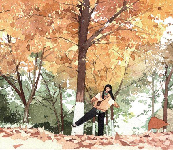 比一比,是秋天黄,是落叶黄,还是我的衣服黄?