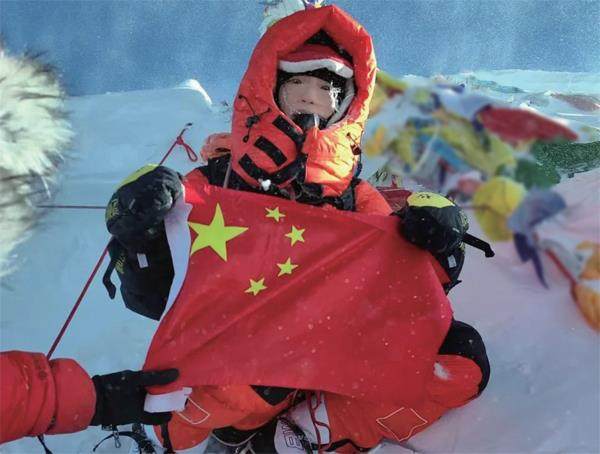 我举着国旗拍了几张照片,作为一个16岁的年轻人,能把国旗带到“地球之巅”,向全世界展示我们中国青年充满挑战精神的样子,我感觉很骄傲。