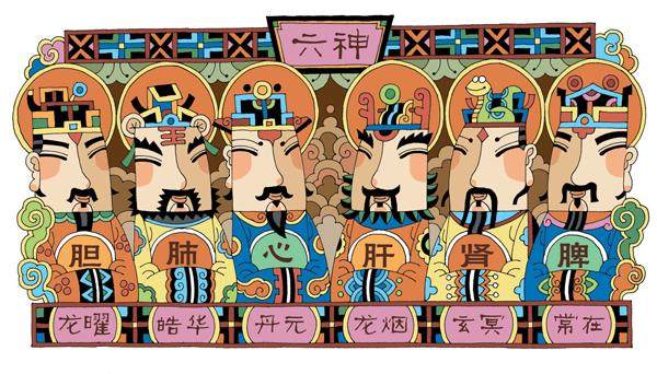 因此,“六神”的概念来自道家。古代道家认为,身体内的六个器官——心、肺、肝、肾、脾、胆,它们分别对应六位神灵。他们有具体的名字且各司其职,主宰着我们的身体,控制着我们的情绪。