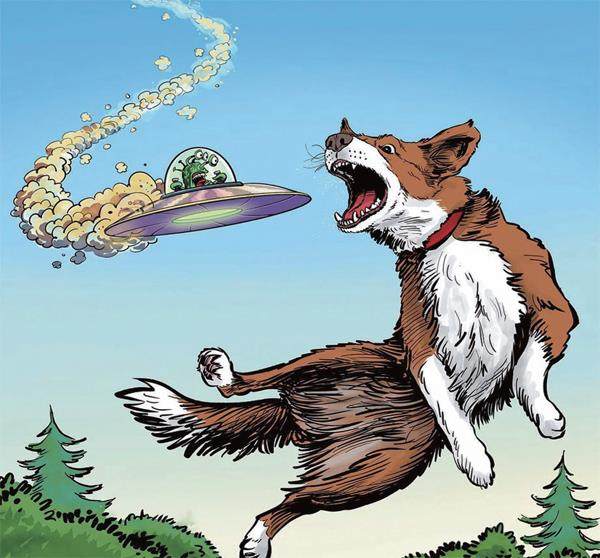 姑娘往后拉了拉牵狗绳,对小伙子说:“管好你的儿子。”