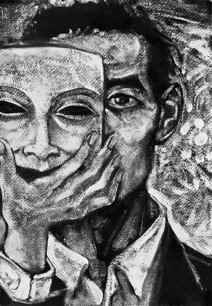 人们在路上来来往往,个个表情麻木。他们谁都没有注意到我的脸谱。他们只是从我身边走过。他们旁若无人,就像独自走在自己的家里一样,却都戴着一张毫无表情的脸谱。他们无法也不想知道刚刚在我身上发生了什么,更没有人来教给我孩子的微笑。