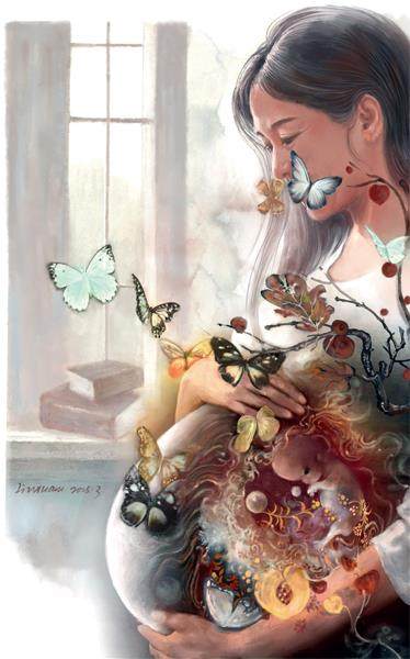 第二十周时,我第一次感受到明确的胎动。一个音符滑过腹部,此后是两个、三个,一组大三和弦,打出一列轻盈的水漂。