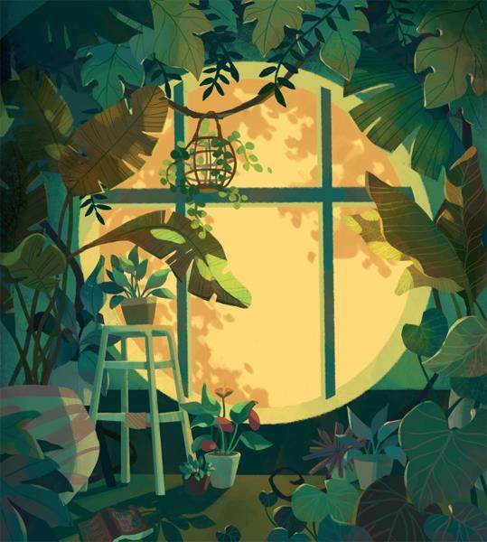 破晓前,月光花沐浴在最后的月光里,而牡丹继续沉睡,将柔软的花瓣收拢。唧唧吱,唧唧吱,蟋蟀在一个奇妙的地方鸣叫着,叫声四处回荡。不过,当太阳升起时,他将安静下来,在临时的居所进入梦乡。