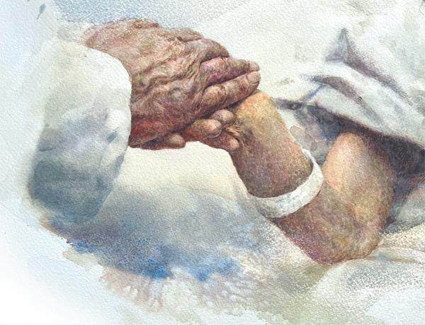 我请护工拿来温水和吸管,但是她吸了两口就吸不动了。我和哥哥一边一个,抚摸她紧抓着轮椅的手,她慢慢地放松了一些。