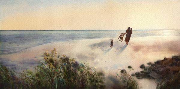 天空如一块淡红色的布幔,缓缓地往山那边拉,一号码头的大操场被铺染得柔和起来。《军港之夜》轻柔地飘荡在风中:“海风你轻轻地吹,海浪你轻轻地摇……”
