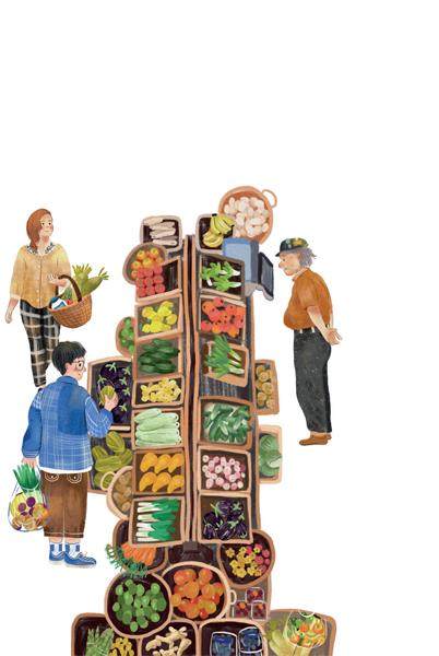 她和丈夫承包的菜地在一座岛上,岛名“江心洲”,四面环水,“绿树村边合”,称得上“绿岛”。他们的菜来自岛上,很多是自己种的,也有帮岛上的邻居代售的。他们种老品种的蔬菜,有的菜特意不施化肥、不打农药,产量上不去,价格就不得不翻倍。