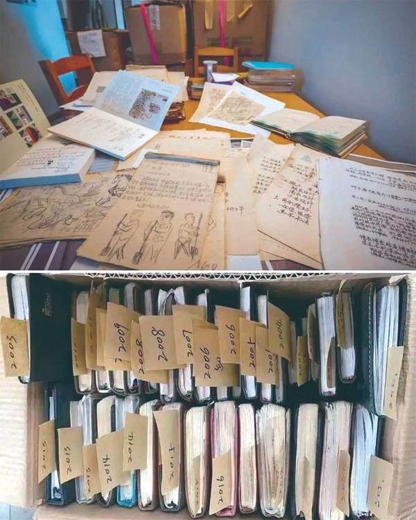 这是父亲从20世纪80年代就开始写的日记、随笔、信件,以及一些画稿。还有很大一部分,是关于叶梦雨的。叶梦雨不到一岁时的涂鸦作品,第一次写下的父亲的名字,上幼儿园时给父亲留的字条……都在其中。叶梦雨读高二、高三时,叶小平甚至为她写了本“高考日记”,用不同颜色的笔迹记录着她的每日三餐和心理状态。