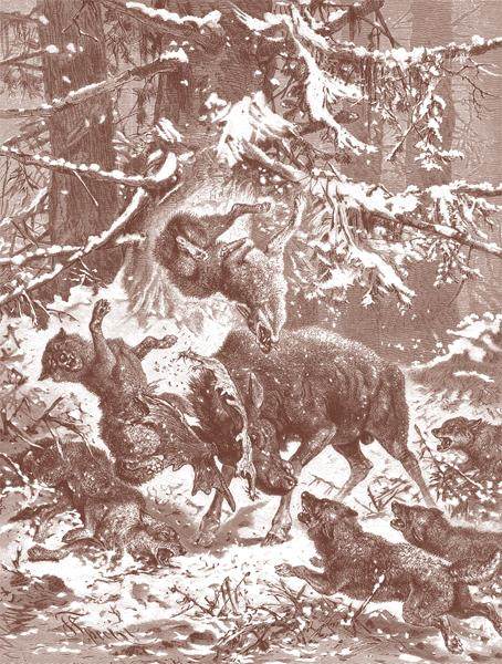 20世纪50年代前,皇家岛与外界几乎处于隔绝状态,岛上拥有茂密的森林、清澈的溪流以及丰富的植被,却没VOPvmu7hc53oDzYVFgn+ig==有大型食肉动物的踪迹。1949年,一场罕见的冬寒,让苏必利尔湖湖面结冰,为动物迁徙创造了条件。大约有20只狼从加拿大的安大略省沿着冰面踏上了皇家岛,从此,这座岛的生态平衡就彻底被打破了。岛上原本生活着约500只驼鹿。当狼踏上这片土地时,一场关于生存与死亡的较量就此拉开帷幕。