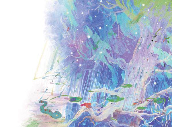 它飘过屋顶,飘过树叶,飘过肩膀,凝成微小的镜面。