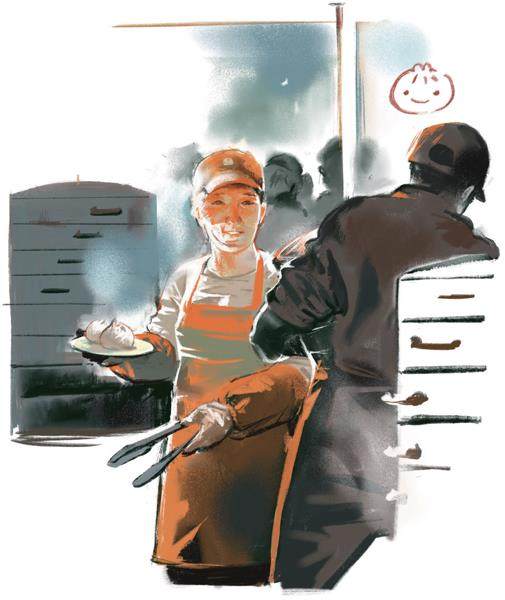 我用包子蘸着辣椒油,两三口一个,全部吃完了。眼前人来人往,他们的身影在我出神的眼中模糊成一片。想着每天都有那么多人,就为了这一口美味,从小城的各个角落奔赴而来,我竟然有一点感动。包子做得好,也是非常值得骄傲的事。