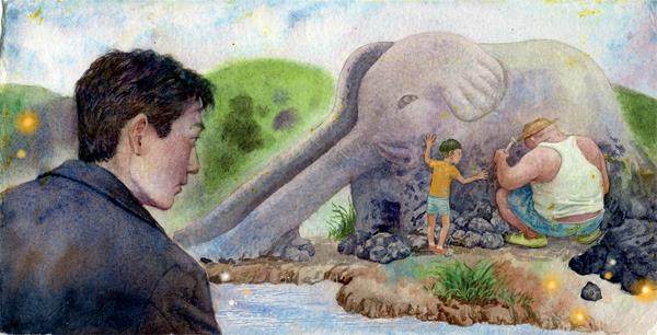 那天,整个村庄的孩子都来了。我问我的同学,我爸爸做的大象滑梯和他们在镇上滑的那个大象滑梯有什么不同。他们说:“哪有什么大象滑梯,都是唬你玩的。”当时我就想,也许整个沂蒙山区都没有大象滑梯,而我爸爸做出来的,是第一个。