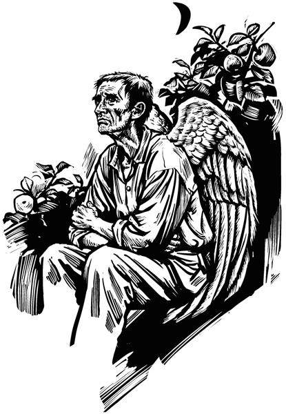 他只能一直坐在这里了吗,就因为害怕白天会被人看见?难道只有帮妻子甩干衣服的时候才能飞?是不是只有在八月炎热的下午,帮孩子们扇风的时候,才会张开翅膀?他以前还会帮族人送信,飞得比风暴还要快。他就像回旋镖一样,在丘陵与山谷间盘旋,接着,又像蓟草种子似的轻快落地。他那时很有钱,族人需要这样长翅膀的人!可现在呢?
