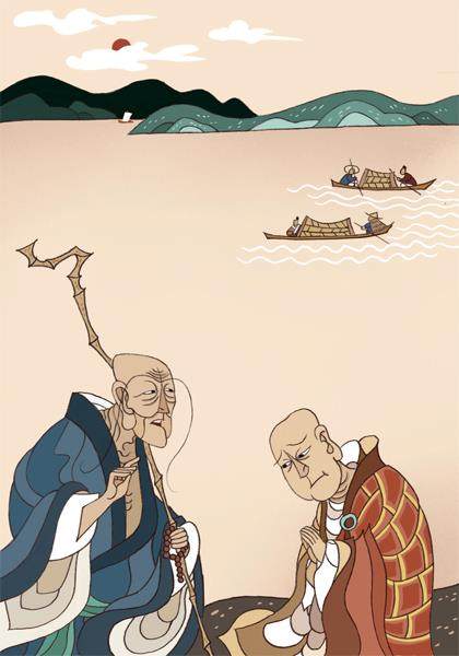 读到这个故事,我眼前仿佛浮现出那个面画:江水裹挟着细碎的阳光缓缓东流,沙滩上凌乱地印着船橹的拖痕,几只被压扁的螃蟹嵌在沙土中,虾和螺的残壳还闪着湿润的光。知云和尚的袈裟被江风掀起一角,他的问题像石子投入深潭。船夫与乘客谁该承担这杀生的罪业?知云和尚也许在期待一个关于业力与责任的精妙辨析。但石头禅师斩钉截铁的回答,打碎了所有预设的答案。