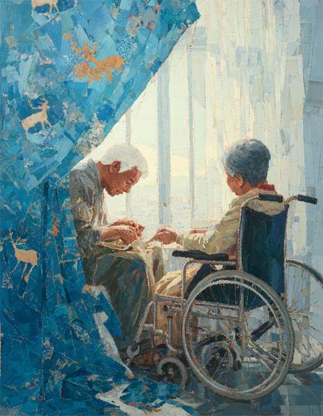 他的爱,都被他一针一线密密实实缝在时间的褶皱里。除了他自己,别人要想发现,就跟考古学家挖掘恐龙化石一样不容易。好在我虽然近视,目力还是甚佳。一次次,仍然被我窥破他的隐藏地点。藏在哪里呢?在我做支气管镜检查时,他拿着知情同意书微微颤抖的手里;在目送发着高烧的我,被推进电梯还久久不肯离开的视线里;在推着轮椅上的我一遍遍穿梭在医院与家之间的脚步里……这个开不开空调要看温度计、一切都以数据说话的“钢铁直男”,他的爱其实从未缺席。