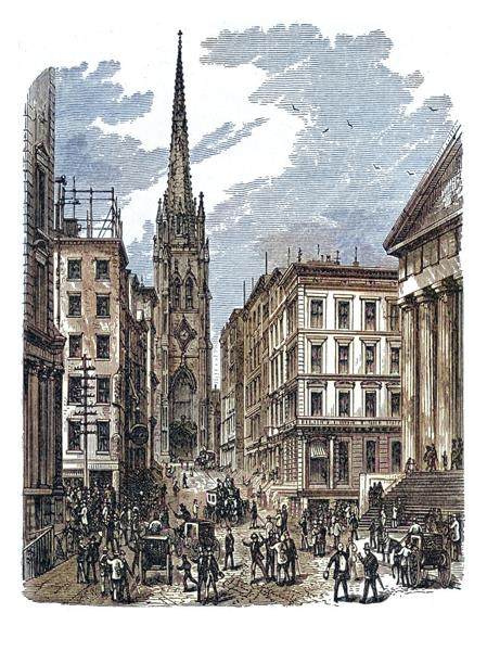 因为华尔街有这个优势,所以它最初是被用来当仓库使用的,船长们把货临时搁在这里,然后去放松,比如喝酒之类的。时间久了,一些有生意头脑的人先是跑到船长们那里询问货卖不卖、多少钱卖,然后再放消息给自己认识的买主,鼓励他们去买;如果买主缺钱,他们便放高利贷……一来二去,华尔街便聚集了大量倒爷及放高利贷的人。“华尔街1.0版”就这么上线了。当然了,这点业务还成不了气候,但它开启了华尔街倒买倒卖的历史新河。