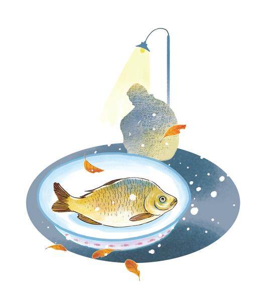 老人就着鱼汤又喝了两杯,又喊来服务员,指着剩汤说:“再砸一遍。”盆中已经没有鱼肉,只剩鱼骨了。服务员又端回去给厨师,厨师暗挑大拇指:“这人是正经老博山,会吃。”然后使出自己的手艺,甩了个蛋花胡椒底的二遍汤。