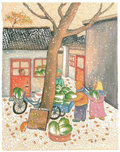 下午四五点,飞起纷纷扬扬的鹅毛雪。菜农老盛套上棉衣,跑到胡同口站了站,接着声如洪钟地吆喝起来:“开锅烂的博山白菜嘞,一毛钱一斤,‘白菜价’嘞……”