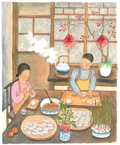 冬至大如年,怎么都得吃顿饺子。屋内的大桌上,红皮萝卜钻出了绿新叶,蒜苗蹿得老高,过了冬至,白昼会逐天增长,阳生春又来。