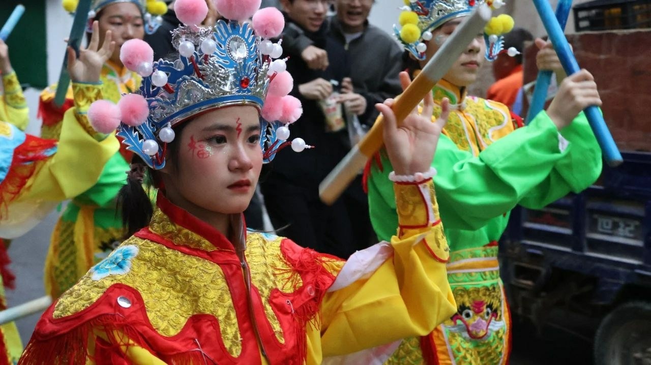 英歌舞是潮汕地区特有的民俗舞蹈,最初只有男子表演。女子英歌队诞生在中华人民共和国成立之初,此后经历数次消失、重建,直到今年春节,借助短视频的传播力,女子英歌队受到广泛关注,圈粉无数。