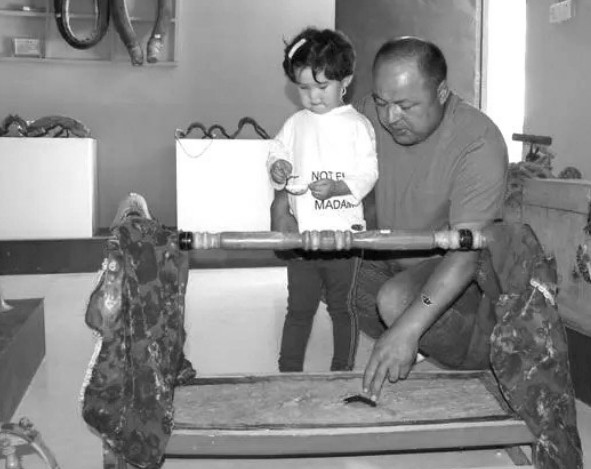 “我的兄弟姐妹都是在这张摇床里长大的。”海拉提说,自己小的时候,大人们忙着干农活、喂牲畜、洗衣做饭,对小孩无法做到“全天候”照顾,为了减轻照看婴幼儿的压力,摇床发挥了大用处。