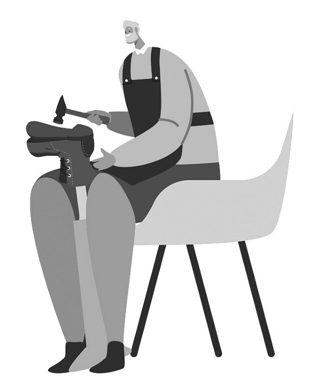 叔叔听得心软,正打算放下手中的活儿伸出手去,谁知另一位用更快的速度把那个女人的鞋子抢过来:“不就几个钉子嘛!我来给她敲,师傅你别停……”然后他打开工具箱,找出榔头,往那儿一蹲,像模像样地抡起榔头钉了起来。