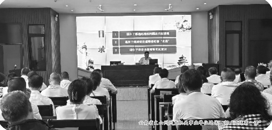 “近年来,一些老同志退休后,不注重党规党纪的学习,纪律规矩意识逐渐弱化,少数退休干部甚至走上违纪违法的道路。加强党纪学习,退休党员、干部应该注意哪些纪律‘红线’……”2024年6月27日,在云南省文山壮族苗族自治州州直机关事业单位退休干部“退休第一课”上,文山州纪委监委驻州委组织部纪检监察组相关负责人,为参加老年大学学习的70余名退休干部作纪律规矩教育讲座。