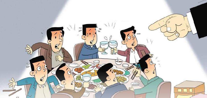 在全面从严治党向纵深推进的高压态势下,尽管党中央三番五次严令禁止,但仍有人不顾纪律铁规,顶风违纪踩“红线”,在饭桌上推杯换盏、在酒局中称兄道弟,甚至借学习培训之名行享乐奢靡之实,在“ 吃吃喝喝”中迷失自我。