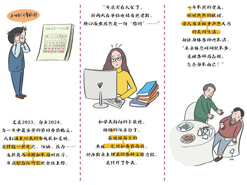 送走2023,迎来2024,当一年中最重要的节日春节临近,人们涌上心头的有收获和遗憾,还伴随一些忧虑、烦恼、压力……这些负面情绪如不及时疏导,年底综合征可能就会找上你。