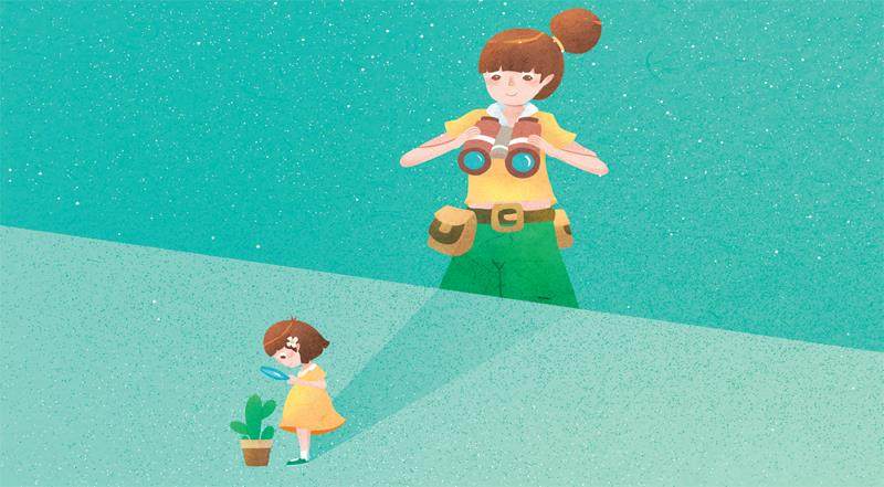 一位母亲非常喜欢带着她5岁的女儿逛市场,可是女儿却总是不愿意去。母亲觉得很奇怪,市场里的东西可谓琳琅满目,为什么女儿不喜欢呢?直到有一次,女儿的鞋带开了,这位母亲蹲下来为女儿系鞋带时,突然发现了一种她从未见过的景象:眼前一片混乱,晃动着的全是腿。那一刻,这位母亲恍然大悟,于是抱起孩子,快步走出了市场。从此,即便是必须带孩子去市场,她也会把孩子抱在怀里或扛在肩上。