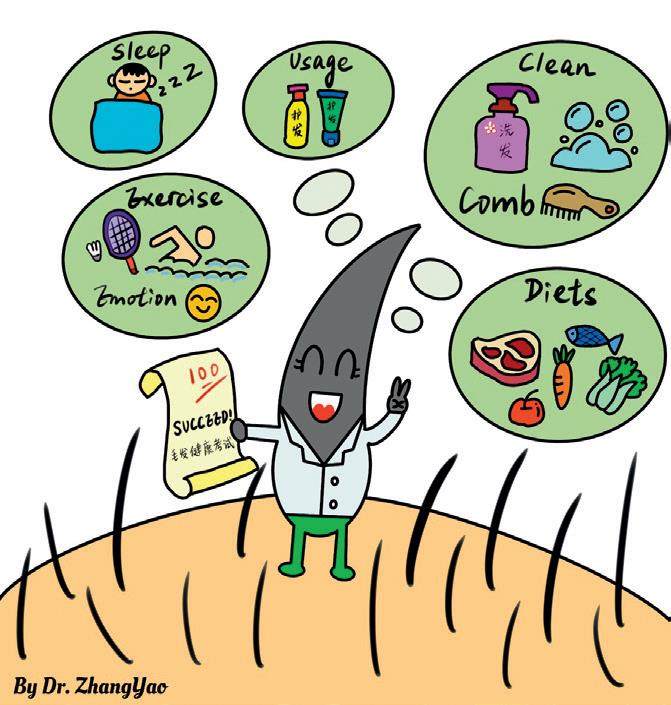 脱发虽不损害生理健康,但会对容貌产生很大的影响,重度脱发会给患者造成巨大的心理压力。脱发疾病的种类有很多,常见的有雄激素性脱发、斑秃、休止期脱发等。除了及时就诊,日常生活中正确地养护头发,也是解决毛发健康问题的重点。通过总结临床经验,我将毛发健康问题的关键点总结为下面这份“SUCCEED”秘籍。