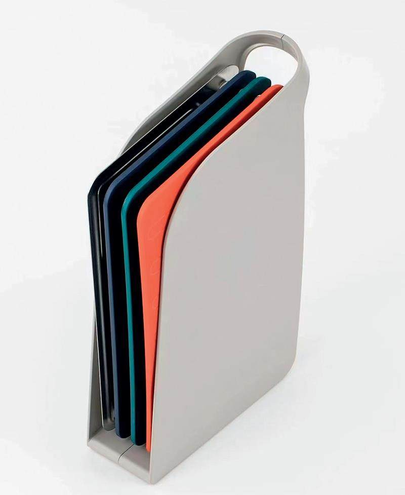 如果只用一个砧板处理各类食材,那么交叉污染是不可避免的。这套砧板由多个单独砧板组成,比普通木质或塑料砧板更耐用,而且不易留下切割痕迹。同时,收纳呈8度倾斜,排水效果极佳。