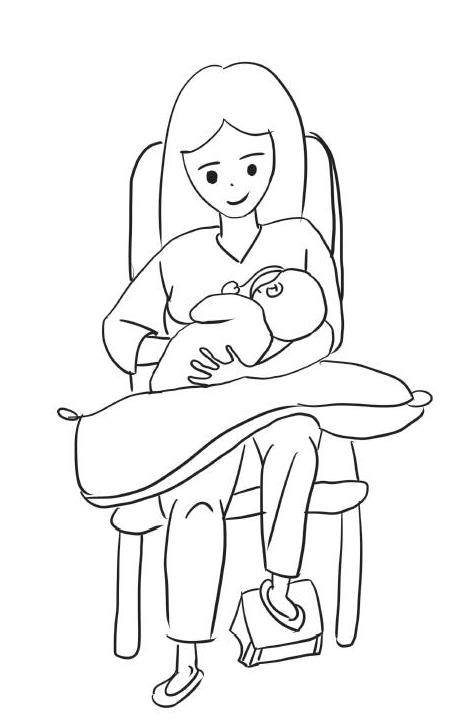 哺乳时,妈妈可以选择高度合适、软硬适宜的椅子,椅背不宜向后倾。哺乳妈妈可以在背后垫一个枕头,保持背部和双肩放松;在膝盖上放一个哺乳枕,帮助支撑婴儿的体重;在脚下垫一个高低合适的小凳,帮助保持婴儿体位。哺乳妈妈也可以坐在床上,背后垫一个枕头,腰部放一个哺乳枕。