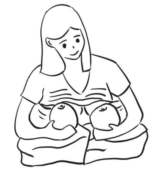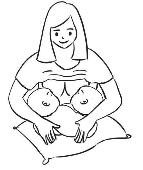 双侧摇篮式:这是适合双胞胎宝宝的特有姿势。两个宝宝大腿彼此交叉,分别躺在妈妈的左右臂弯中,妈妈的膝盖上放一个哺乳枕,双脚下支一张小凳子,以减轻两个宝宝的体重给妈妈造成的负担。