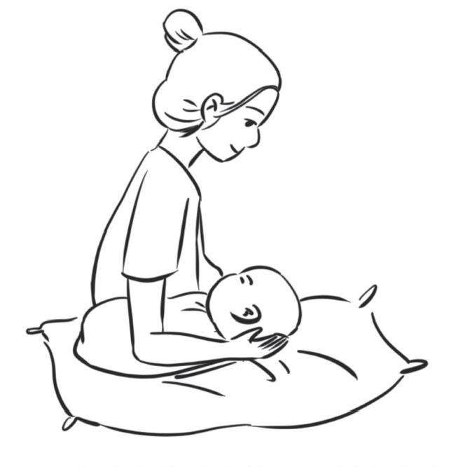 单侧摇篮式:将宝宝的头枕在妈妈的肘窝上,用前臂托住宝宝的脊椎,手掌托住宝宝的臀部,另一只手扶住宝宝或者托住乳房底部,让宝宝的肚子紧贴妈妈的胸腹,使宝宝的身体与乳房平行,然后将乳头放进宝宝嘴里。