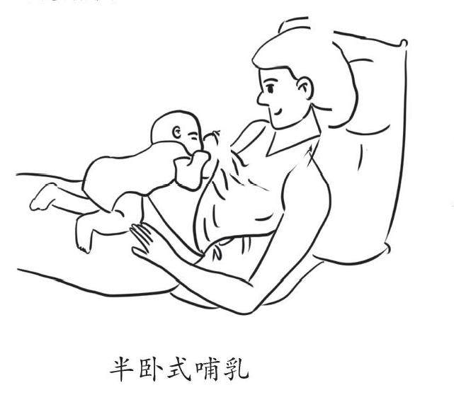 该哺乳姿势适合体弱、剖宫产术后不能正确吮吸的婴儿,或是母亲乳头疼痛的情况。