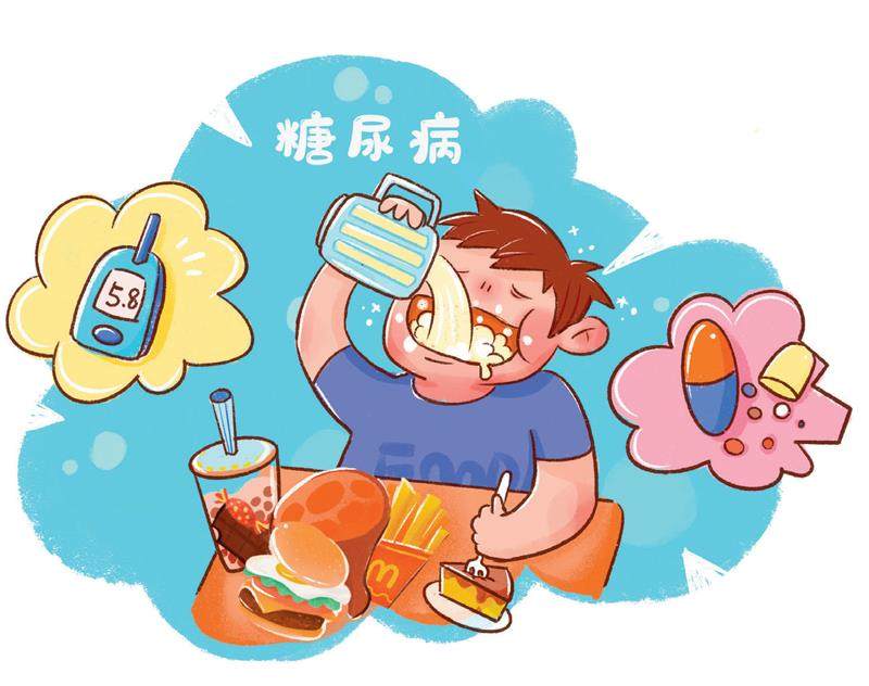 那么,为何临床上年轻的糖尿病患者越来越多了呢?主要是因为很多年轻人逐渐养成了不良的生活习惯,给2 型糖尿病的发生和发展提供了“温床”。吃饭靠外卖、过量摄入含糖饮料、零食成瘾、长期久坐、不运动、熬夜……这些坏习惯往往会诱发肥胖,而肥胖是胰岛素抵抗的一大诱因。