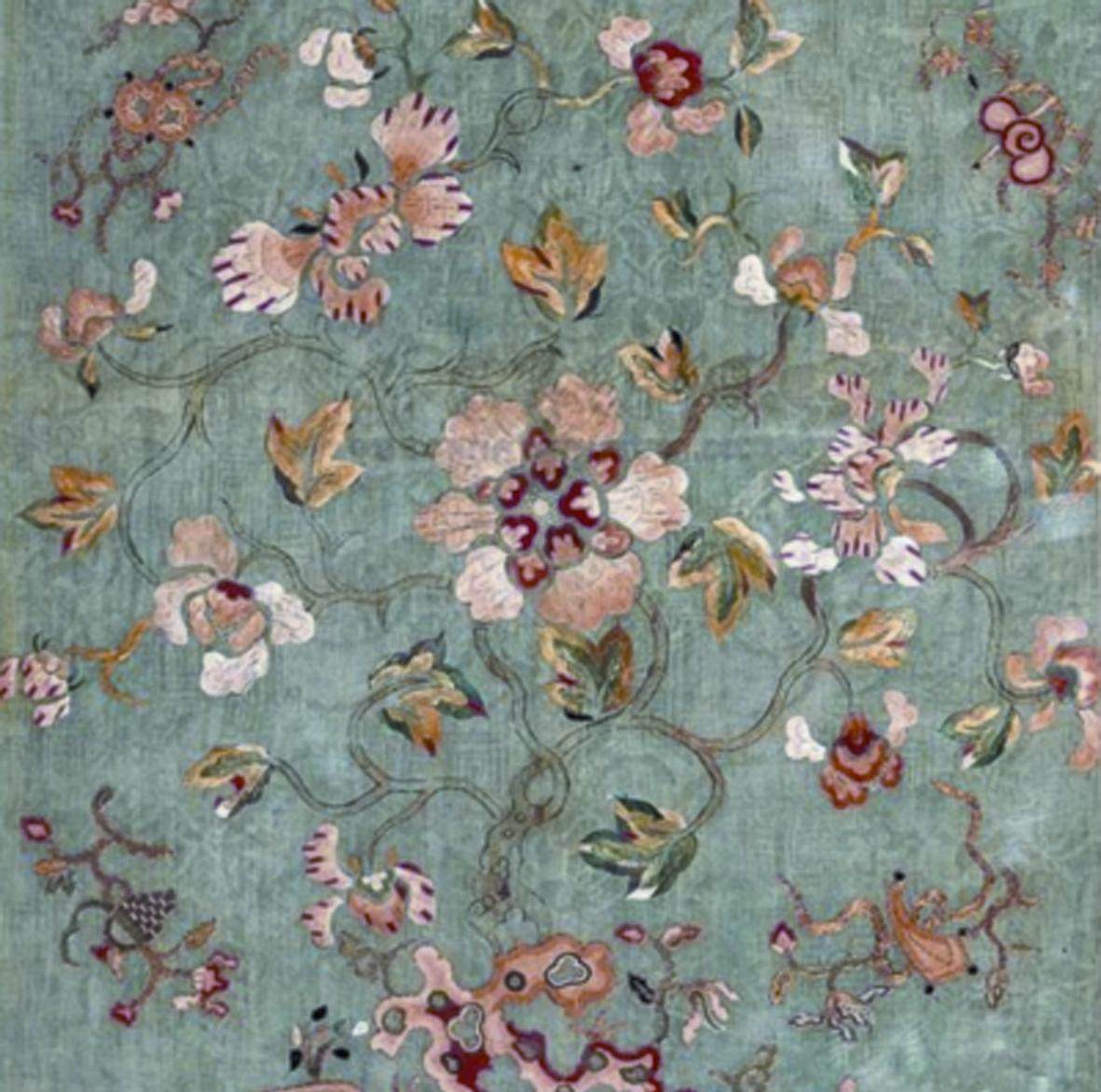 作为剧中主要元素线索的绣样和扇面亦是如此。明代中期之后开始形成具有本朝特色的吉祥纹样,正所谓“图必有意,意必吉祥”。此时的绣样和扇面受到“吴门画派”影响,以苏绣为主,是画和绣的结合,图案、色彩都比较雅致。文渊阁大学士王鏊编纂的《姑苏志》曰:“精、细、雅、洁,称苏州绣。”[12]剧中出现的《河畔刺绣图》以及后半部分出现的《百寿图》、孔雀图等纹样都是从苏绣中汲取的。