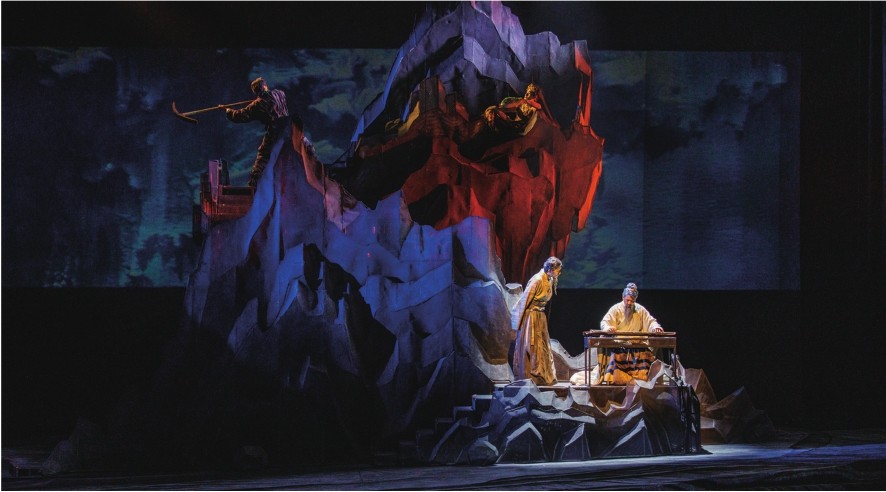 不过,三者之间只有“愚公移山”的理想信念内涵更为深刻。除了不止不休的坚韧以外,“愚公”精神更包含着造福子孙、普惠千秋万代的伟大理想,这样的信念之火是古老的中华民族传承至今的力量,它蕴含在那些伟大的心灵之中,为老百姓带来希望的火种。同时,《愚公移山》的故事更是从对“智叟”和“愚公”的塑造中体现了古老华夏文明中哲学层面的“阴阳相生”与“辩证转化”。这样的哲理性思考也在该音乐剧中获得了多角度诠释。